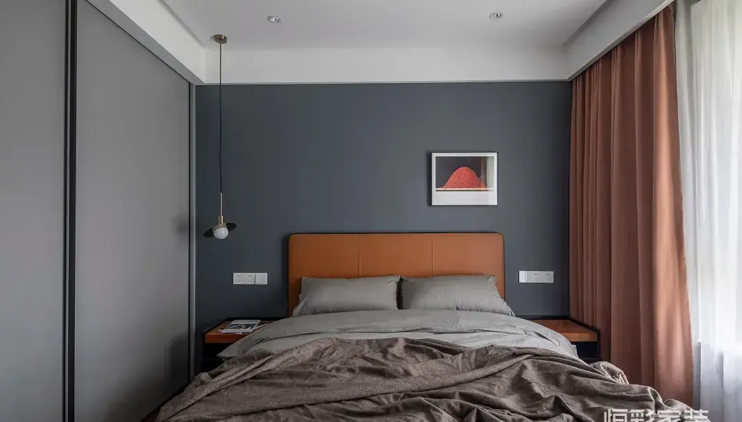 如果是灰色墻面,選擇搭配撞色的窗簾。在軟裝中,質(zhì)感才是最高級的表現(xiàn)形式。