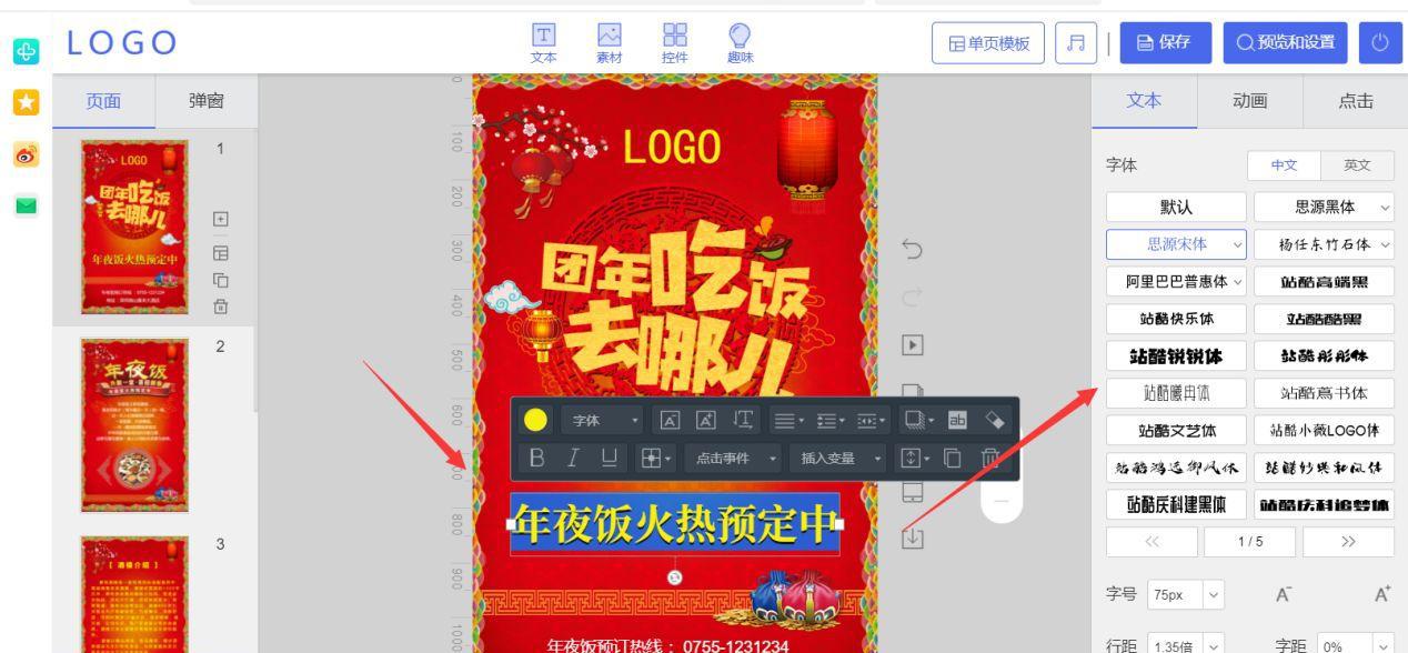 編輯頁面內容時,左邊是頁面縮略圖,中間是預覽框,點擊相應內容即可進行修改。雙擊圖片進行替換,雙擊文本進行編輯,調整字體大小等。